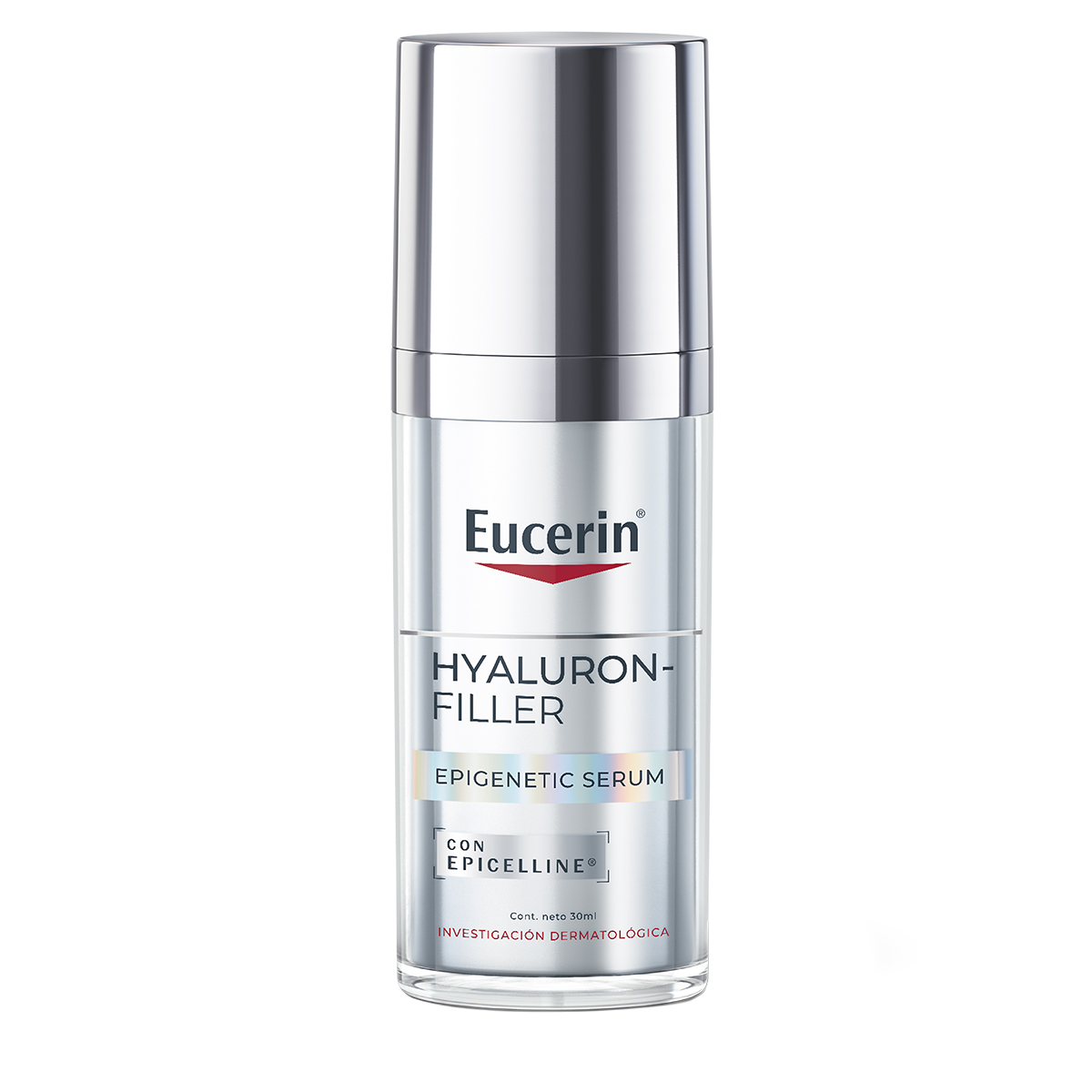 El Epigenetic Serum de Eucerin es un producto innovador diseñado para combatir el envejecimiento de la piel. Su ingrediente principal, el Epicelline®, trabaja a nivel celular para reactivar los genes asociados con la juventud de la piel. La tecnología «Age Clock» de Eucerin permite determinar la edad biológica real de la piel, permitiendo un tratamiento más preciso y efectivo. El ácido hialurónico en la fórmula proporciona una hidratación intensa, mientras que la saponina de soya estimula la producción natural de ácido hialurónico en la piel, y finalmente la enoxolona añade un componente protector, ayudando a la piel a defenderse contra los daños ambientales y a repararse