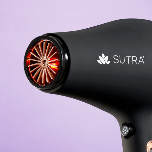 La Infrared Blow Dryer de Sutra es una experiencia de secado de alta calidad que ayuda a secar el cabello de manera eficiente, creando un volumen impresionante y logrando peinados duraderos que están hidratados, revitalizados y llenos de brillo. Equipado con un motor AC y tecnologías exclusivas de Sutra Beauty, como el calor saludable de infrarrojo lejano (IR) y la tecnología iónica, este secador utiliza longitudes de onda suaves que secan el cabello desde el interior hacia afuera, estimulando el cuero cabelludo para fomentar un crecimiento saludable del cabello.