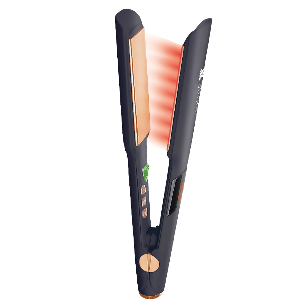 La plancha de pelo Sutra Beauty Infrared 2 representa una revolución en el estilizado de tu cabello, combinando la eficiencia del titanio con los beneficios terapéuticos de la tecnología infrarroja lejana. Este innovador dispositivo permite un estilizado más rápido con calor suave, preservando la salud y belleza natural de tu cabello. La tecnología de infrarrojo lejano (FAR Infrared) es el corazón de esta plancha excepcional. A diferencia de las planchas convencionales que calientan el cabello desde el exterior, los rayos infrarrojos penetran directamente en la corteza del cabello, calentándolo desde el interior hacia el exterior. Esto es similar a cuando el sol calienta nuestra piel – no solo sientes el calor en la superficie – sino que penetra profundamente para brindar un bienestar completo.